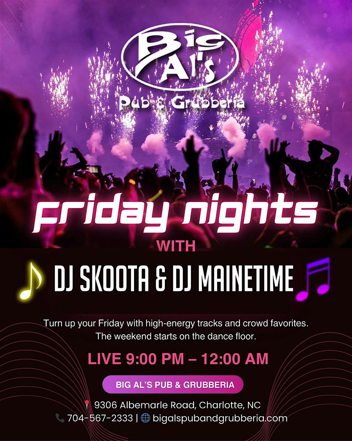 Join us FRIDAY NIGHT at BIG AI PUB for an epic live set with the one and only DJ SKOOTA spinning all your favorite tracks. This in-person event is the perfect way to kick off your weekend with great vibes, killer beats, and an energetic crowd. Don’t miss out on the fun—bring your friends, hit the dance floor, and let's make some memories together!