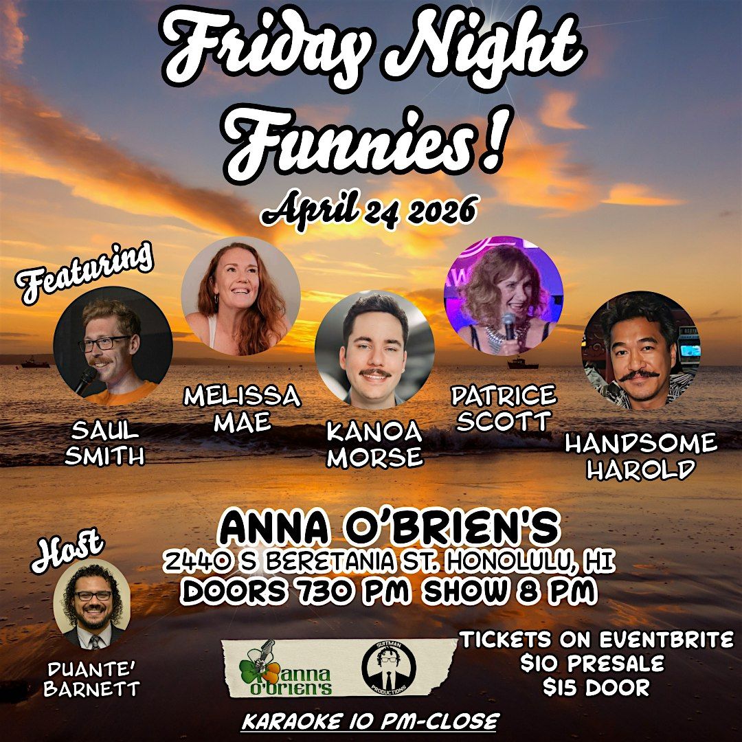 The comedy show will in the upstairs bar of the famous Anna O'Brien's. Lineup has comedians from all over the island and some local legends.About this Event
