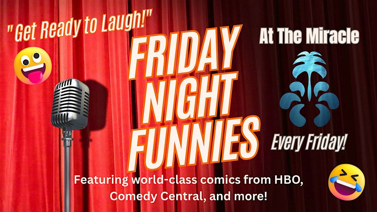 Get ready to laugh out loud at the Friday Night Funnies comedy show! Join us in person at the beautiful Miracle Springs Resort & Spa for an evening filled with hilarious stand-up, good vibes, and great company. It's the perfect way to kick off your weekend with smiles and chuckles. Don’t miss out on a night of pure fun and entertainment!