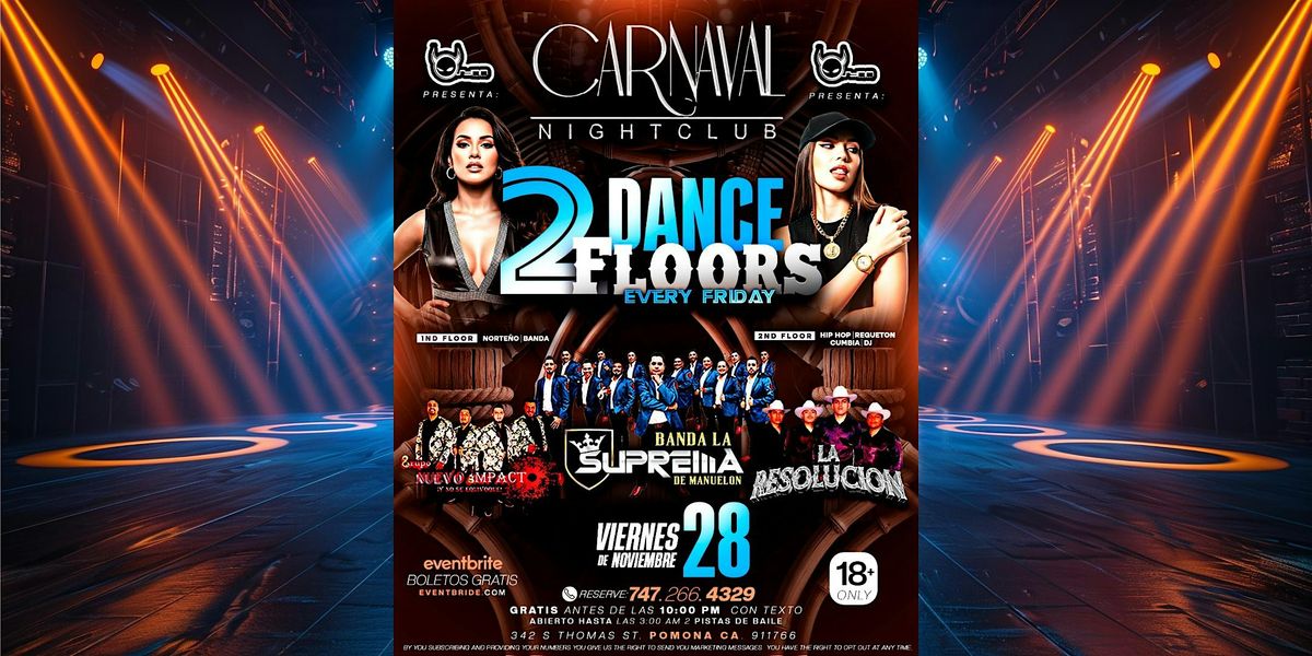 -- CARNAVAL NIGHTCLUB IS THE ULTIMATE VENUE IN POMONA! TWO DANCE FLOORS EQUIPED WITH STATE OF THE ART SOUND AND PRODUCTION SYSTEM WITH A MEZZAINE LEVEL AND 4 FULLY STOCKED BARS!