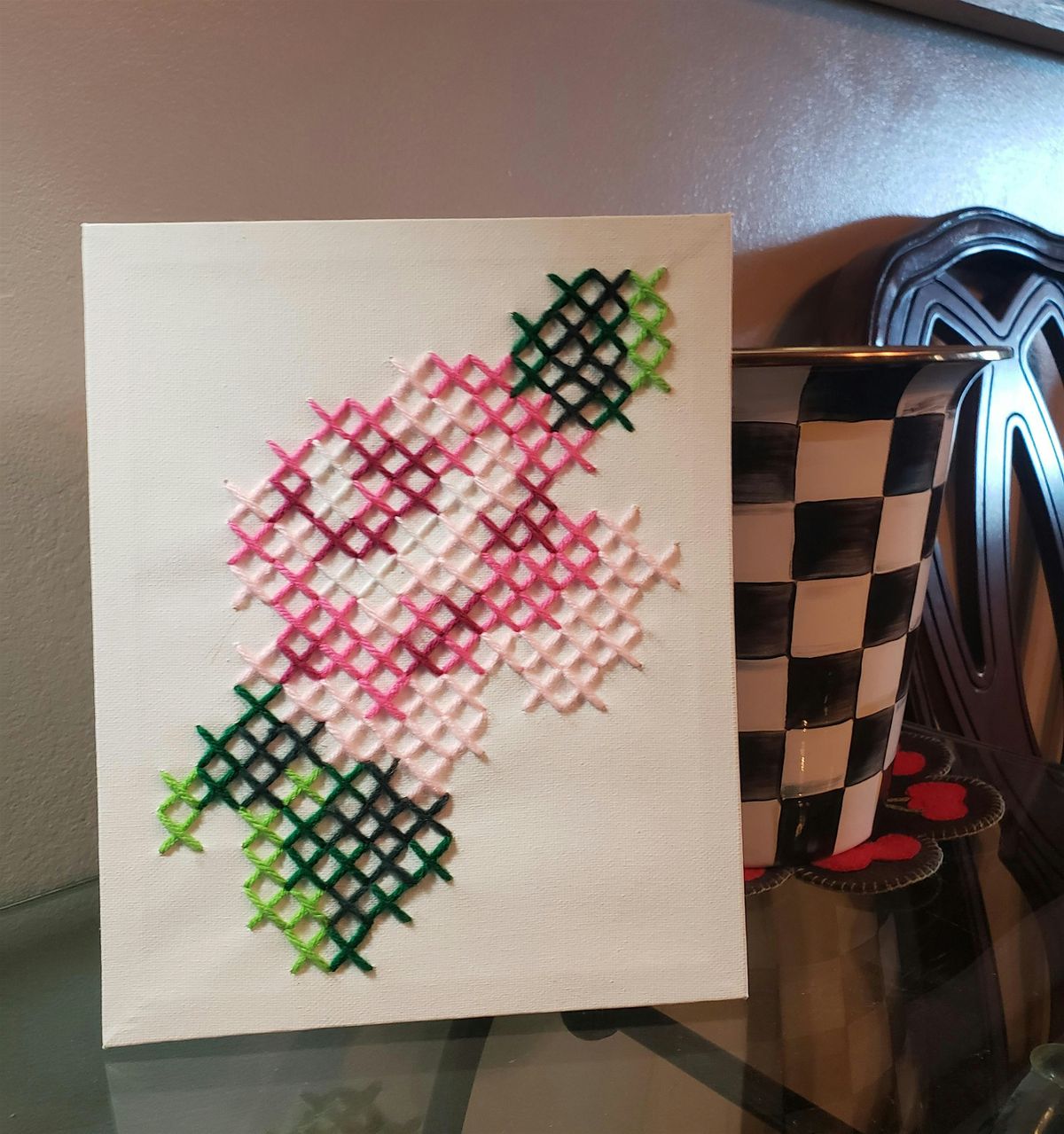 Cross-stitched roses are having a moment—and now you can create one of your own! In this hands-on workshop, you’ll transfer a charted rose design onto an 8” x 10” canvas and stitch it using basic cross stitch, an easy and approachable technique perfect for beginners.