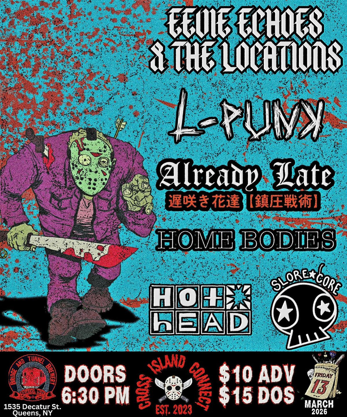 EEVIE ECHOES + THE LOCATIONS, L-PUNK, ALREADY LATE, HOME BODIES, MAREKO & THE SLORES, HOT HEAD AT BRIDGE AND TUNNELAbout this Event
