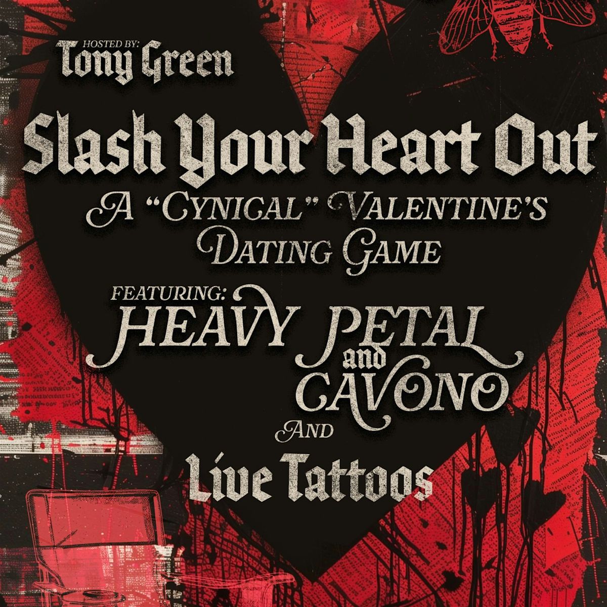 A fun take on the dating game show, featuring outrageous horror themed questions, 2 live bands, and 2 tattoo artists offering up specials!