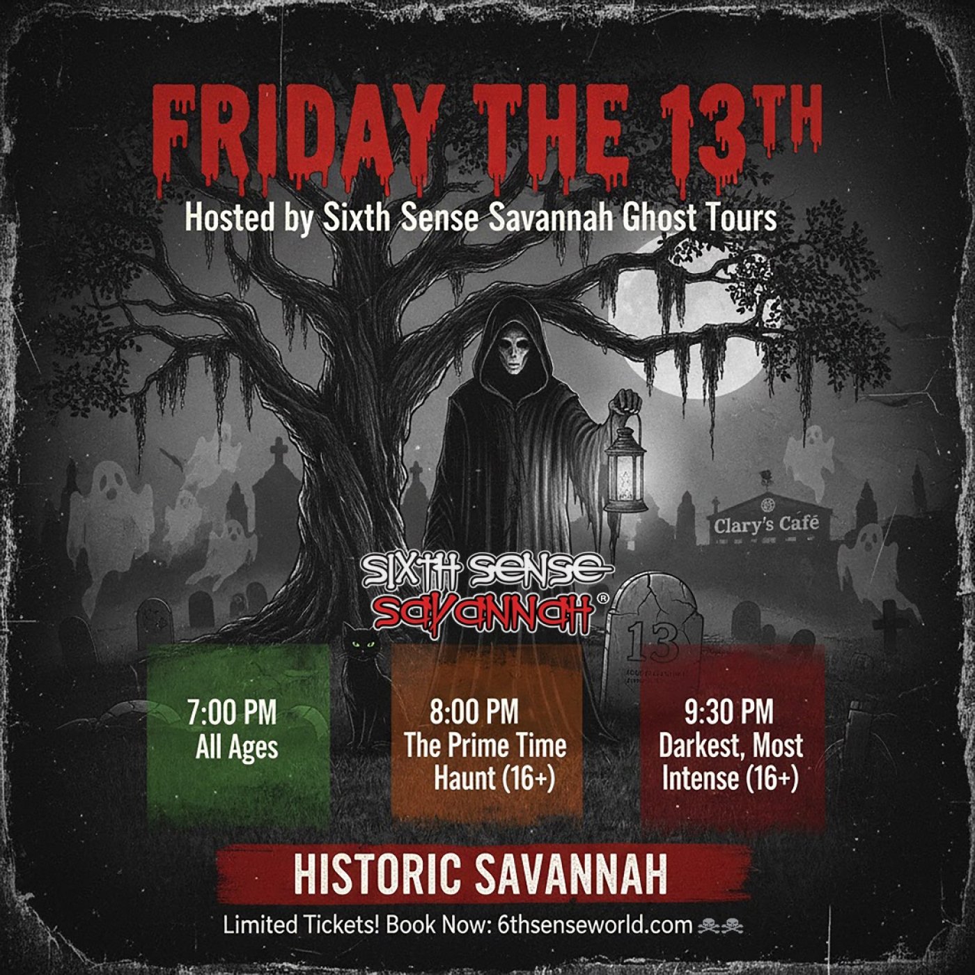 Friday the 13th Ghost Tours hosted by Sixth Sense Savannah\u00a9 7pm, 8pm & 9:30pm
