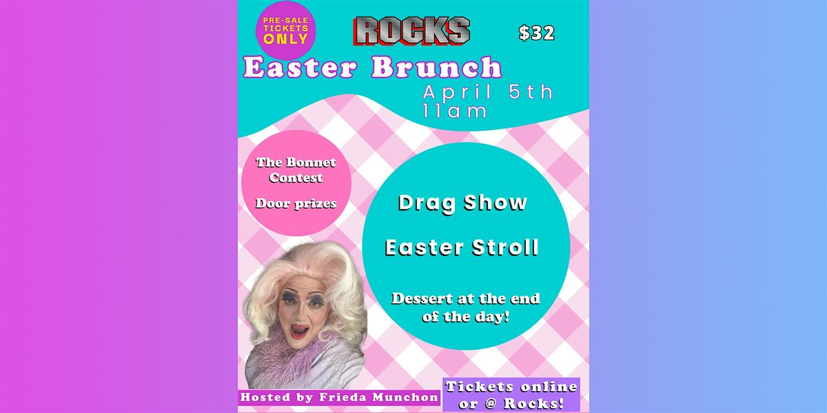 It's that time of year again folks! Come to ROCKS on Easter Sunday at 11AM for Frieda's Fabulous Easter Brunch. With a Drag Show, Easter Egg Hunt, Door prizes, Bonnet contest, Easter Stroll & MORE!