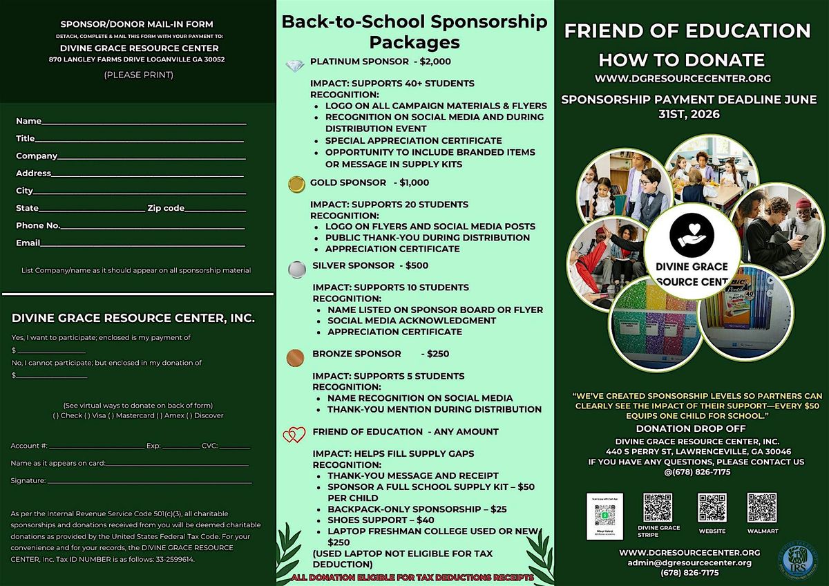 - Backpack-only sponsorship – $25