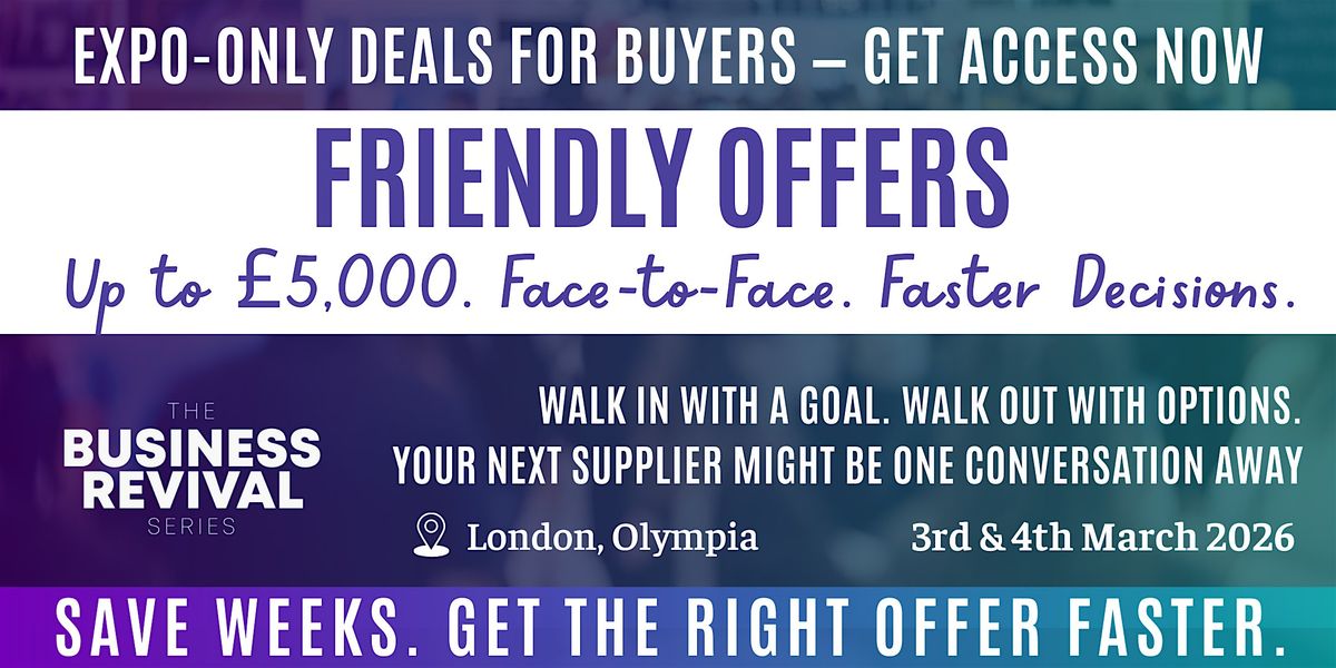 Friendly Offers for Buyers at Business Revival Series is designed to change that.