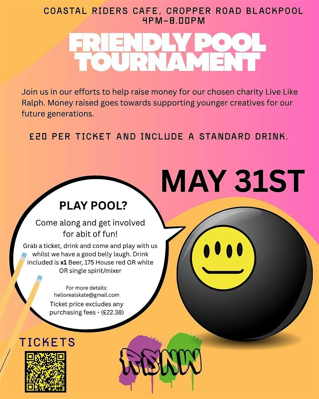 Ready to pick up that old cue for a good cause? We have a few projects running for young creatives in Blackpool and we are actively raising funds to keep this building for the next generation of skateboarders and creative individuals.