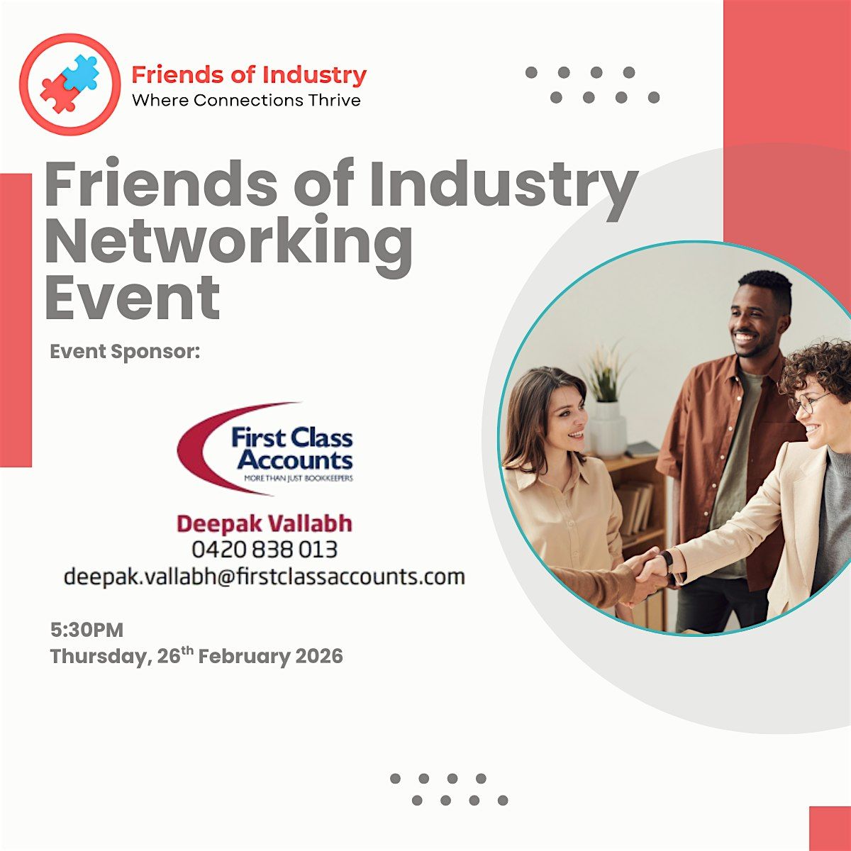 Get ready to connect with amazing people in the industry at the Friends of Industry Networking Event! This in-person gathering is your chance to mingle, share ideas, and build lasting friendships. Whether you're a seasoned pro or just starting out, everyone’s welcome to join the fun and expand their network. Don’t miss out on this casual and friendly meet-up — come say hi and make some new pals!