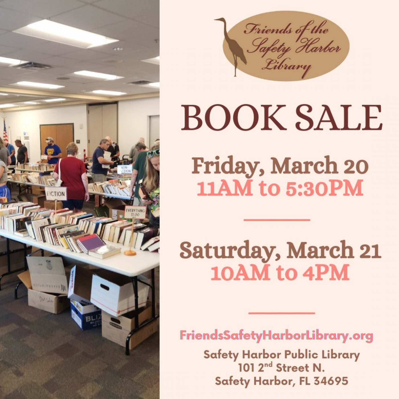 The Friends of the Safety Harbor Library announce their March TWO DAY Book Sale! Most items $2.00. Books in all genres for all ages, CDs, DVDs, and more. All proceed benefit library programs.