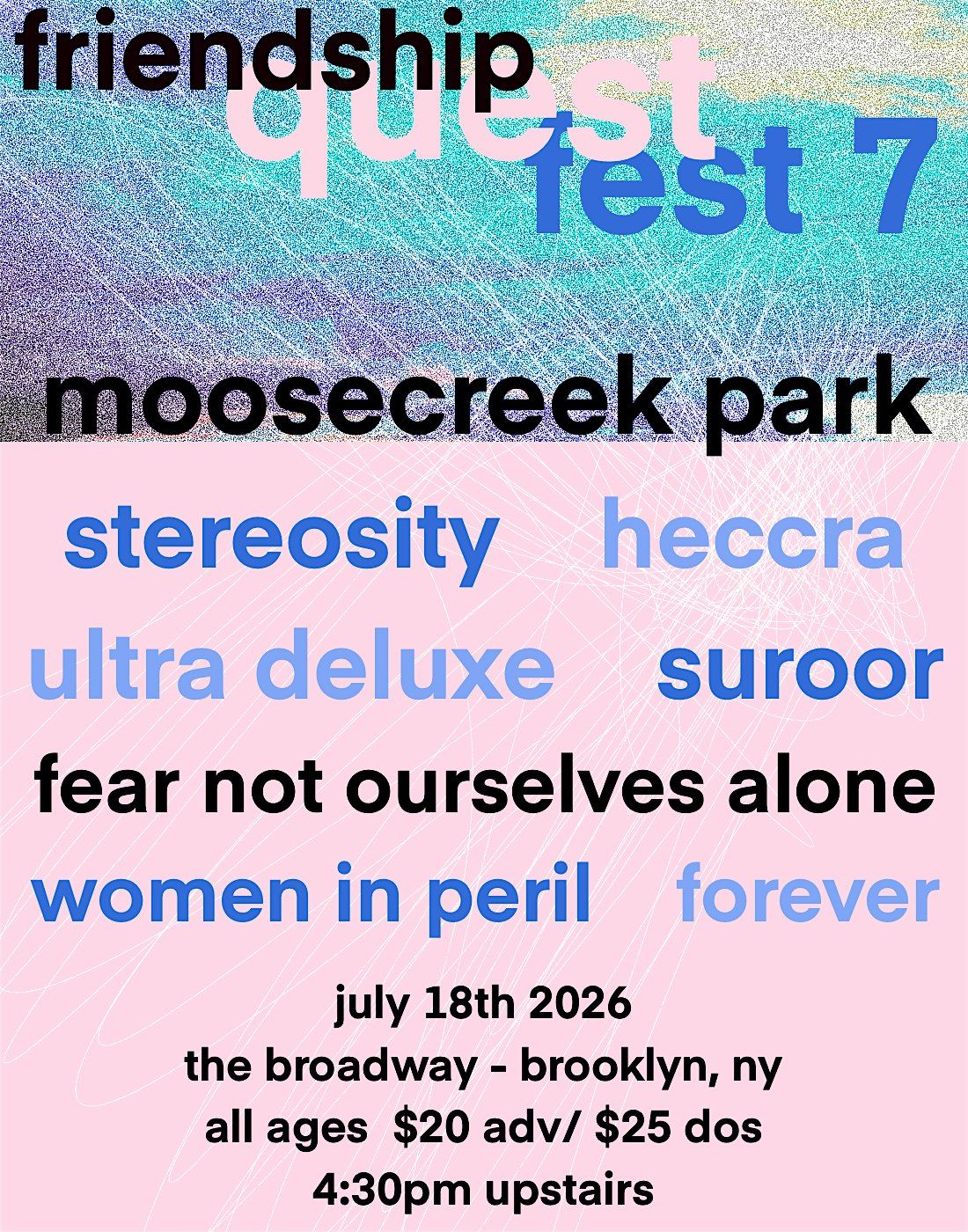 Friendship Quest Fest VII ft Moosecreek Park, Stereosity, Heccra, Ultra Deluxe, Suroor, Women in Peril, Fear Not Ourselves Alone & foreverAbout this Event