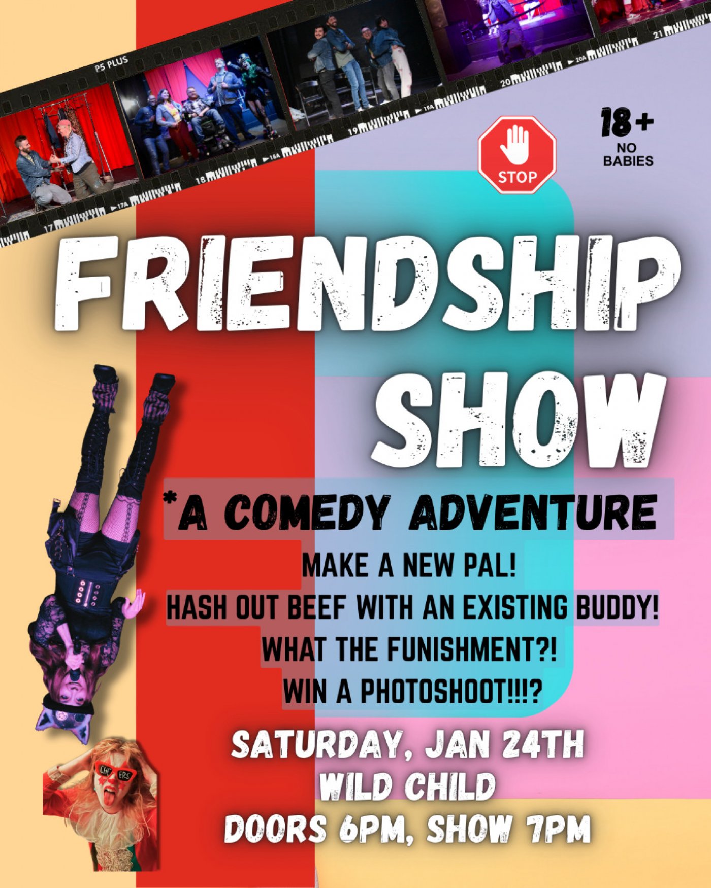 Friendship Show is a live, interactive comedy show where friendships are made, tested, and occasionally put on trial (in the most loving, ridiculous way possible). Audience members can: