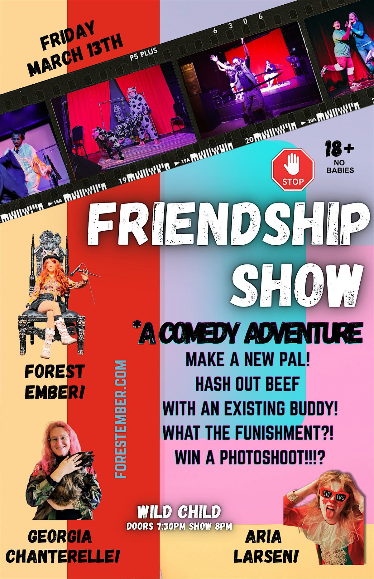 Friendship Show is a live, interactive comedy show where friendships are made, tested, and occasionally put on trial (in the most loving, ridiculous way possible). Audience members can: