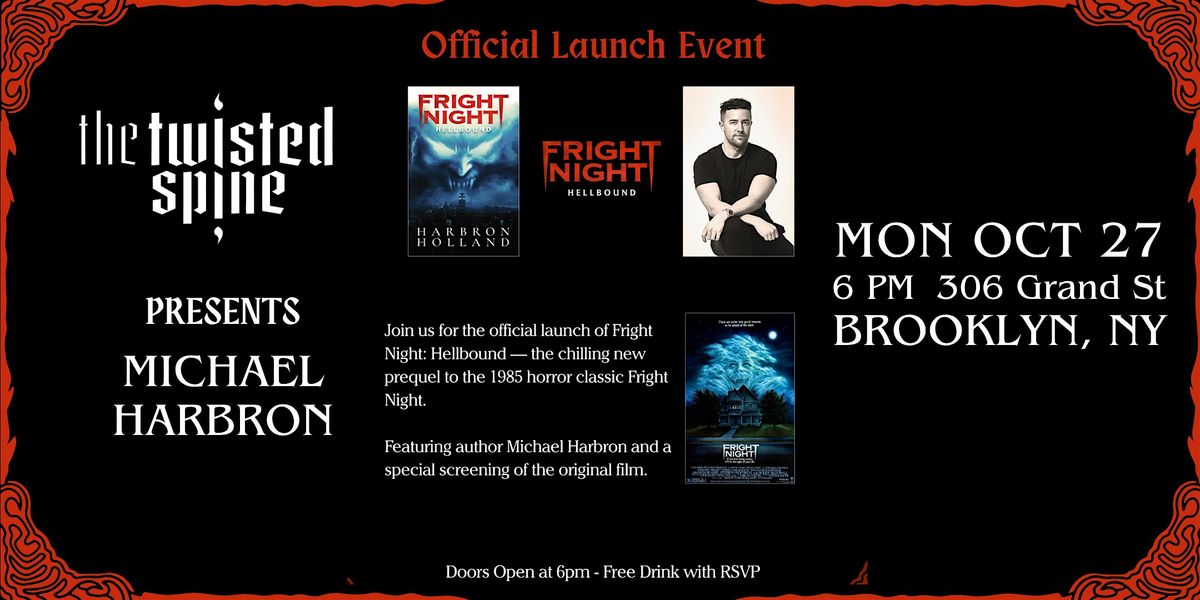 On Monday, October 27, The Twisted Spine is thrilled to welcome author Michael Harbron to the store for a special pre-release launch event of FRIGHT NIGHT: HELLBOUND, the prequel novel to the 1985 horror classic film.