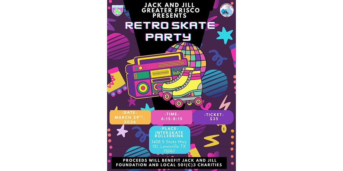 Welcome to the Greater Frisco Jack and Jill Teen Retro Skate Party! Get ready to skate,dance, mingle, and Party With a Purpose! This in-person event is the perfect opportunity to meet new friends, show off your moves on the dance floor, and create unforgettable memories. Don't miss out on the fun - mark your calendars, wear your retro outfit and get ready to party with us!
