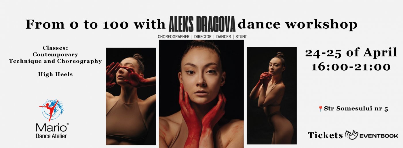 Pe 24-25 aprilie, te invităm la un weekend intens de mișcare, expresie și energie, la Studio Mario Dance Atelier, alături de Aleksandra Dragova, artistă cu un CV impresionant care colaborează cu cele mai mari studiouri de film și artiști internaționali!