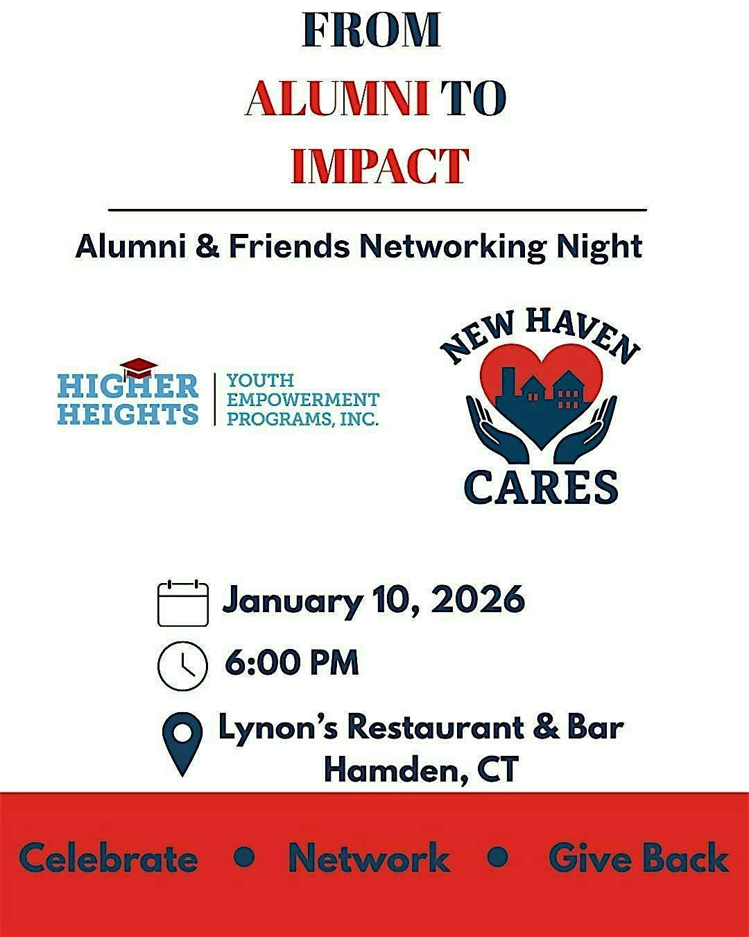 Join us in person for an inspiring event where Higher Heights alumni come together to share success stories, network, and explore how to make a real impact in their communities. Connect with passionate individuals, gain insights, and be part of a movement driving change. Don’t miss this chance to engage with the amazing Higher Heights and New Haven Cares community! Bring canned corn, in an effort to support our annual MLK day of service initiave and help feed families in need!