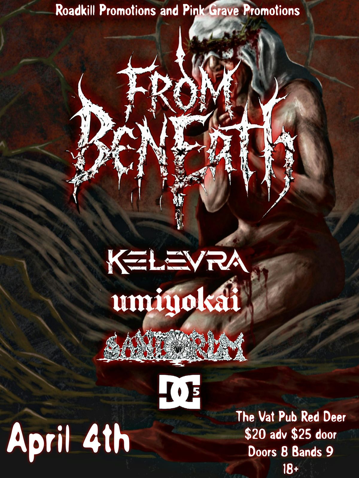 From Beneath and 3 other deadly bands are making their way to Red Deer to join local legends Umi Yokai The Vat Pub this April 4!