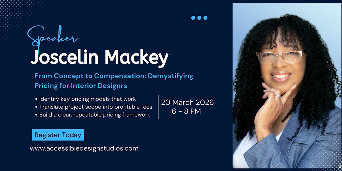 Ready to crack the code on pricing your interior design projects like a pro? This fun, in-person event will break down the secrets to setting prices that reflect your true worth and attract the right clients. Come mingle, learn, and boost your business strategy in a relaxed setting. Don’t miss out on leveling up your pricing game!