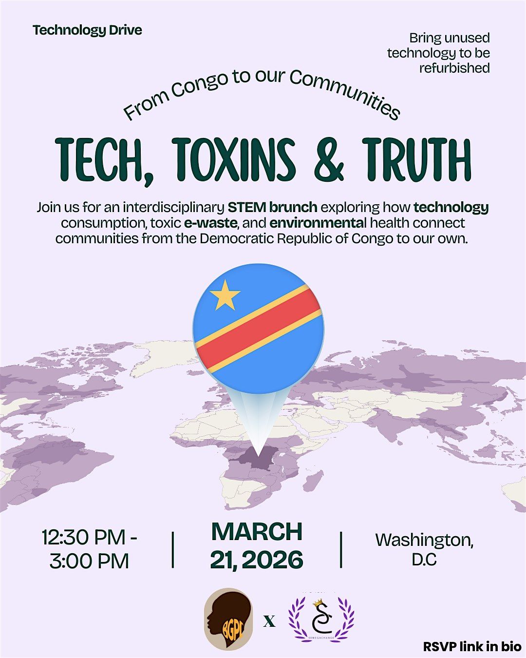 This year, SemegaChange, in collaboration with the Black Girls in Pre- Health Collective (BGPC), will host “Tech, Toxins, and Truth: From Congo to Our Communities,” an event dedicated to unpacking the hidden environmental and health consequences of global technology consumption.