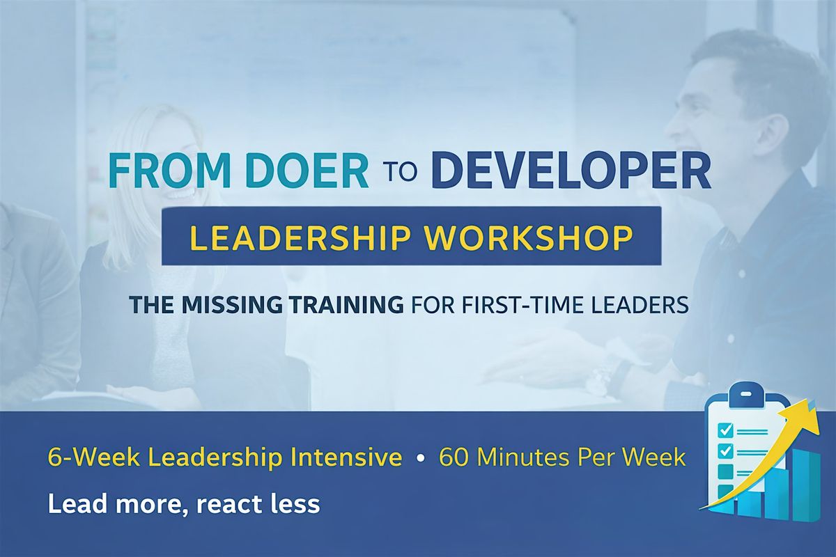 From Doer to Developer is a practical 6-week leadership workshop designed for new and emerging leaders who want structure, clarity, and confidence in how they lead.