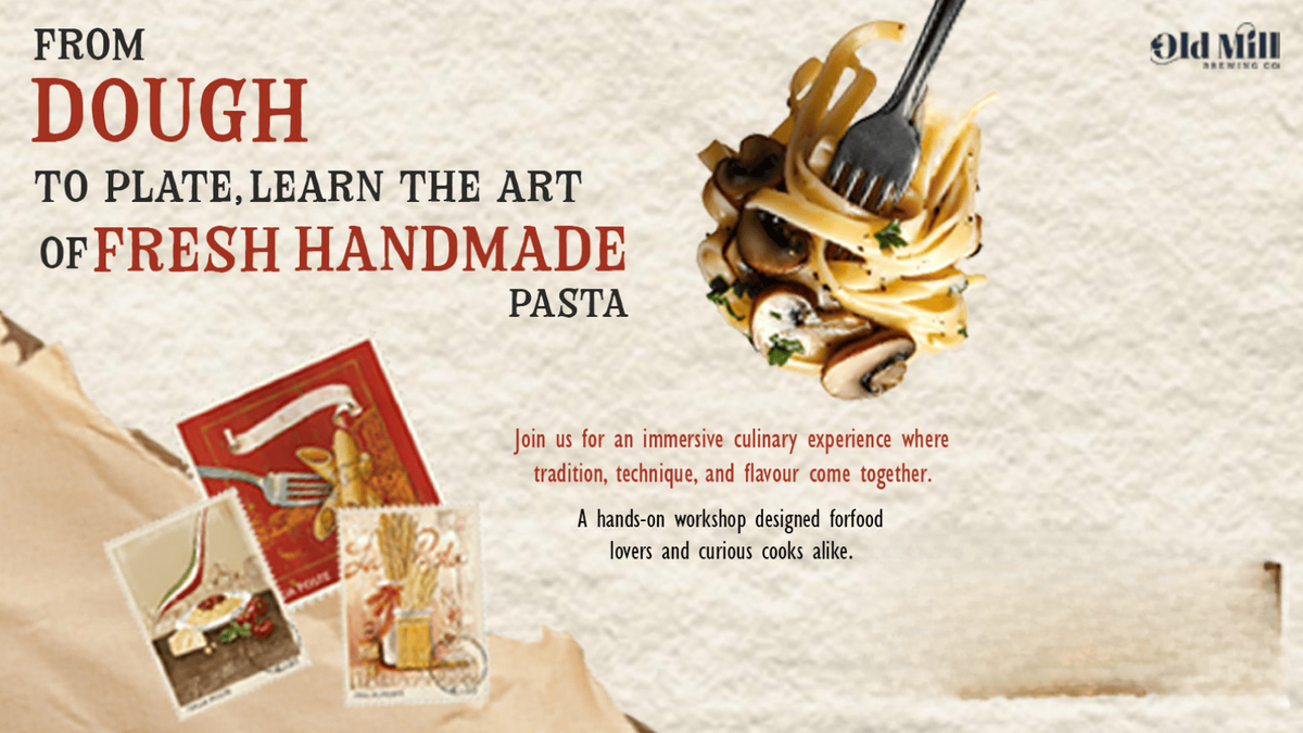 From Dough to Late Plate – Fresh Handmade Pasta Workshop at Old MillDiscover the art of fresh pasta making at Old Mill with our immersive “From Dough to Late Plate” workshop. Guided by our expert chefs, you’ll learn how to transform simple ingredients into beautifully handcrafted pasta—from kneading the dough to shaping, cooking, and plating it to perfection.This hands-on experience covers traditional techniques, sauce pairing tips, and plating secrets, making it perfect for food lovers, beginners, and culinary enthusiasts alike. End the session by enjoying your freshly prepared pasta in a warm, vibrant brewery setting.Highlights:Hands-on fresh pasta making experienceLearn dough preparation, shaping & cooking techniquesChef-led guidance and tipsEnjoy your handmade pasta at the end of the workshopHosted at Old Mill Brewing Co.