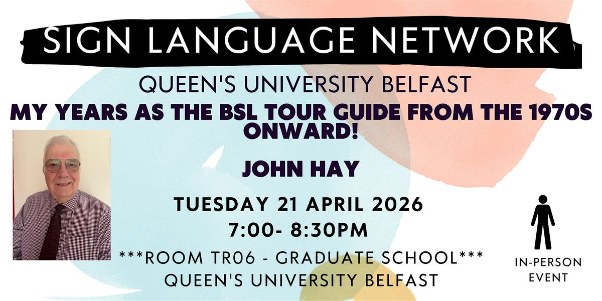 John will share in BSL his 50+ years guiding Deaf tourists, mainly around Edinburgh, and hopes to grow the number of Deaf guides UK-wide.