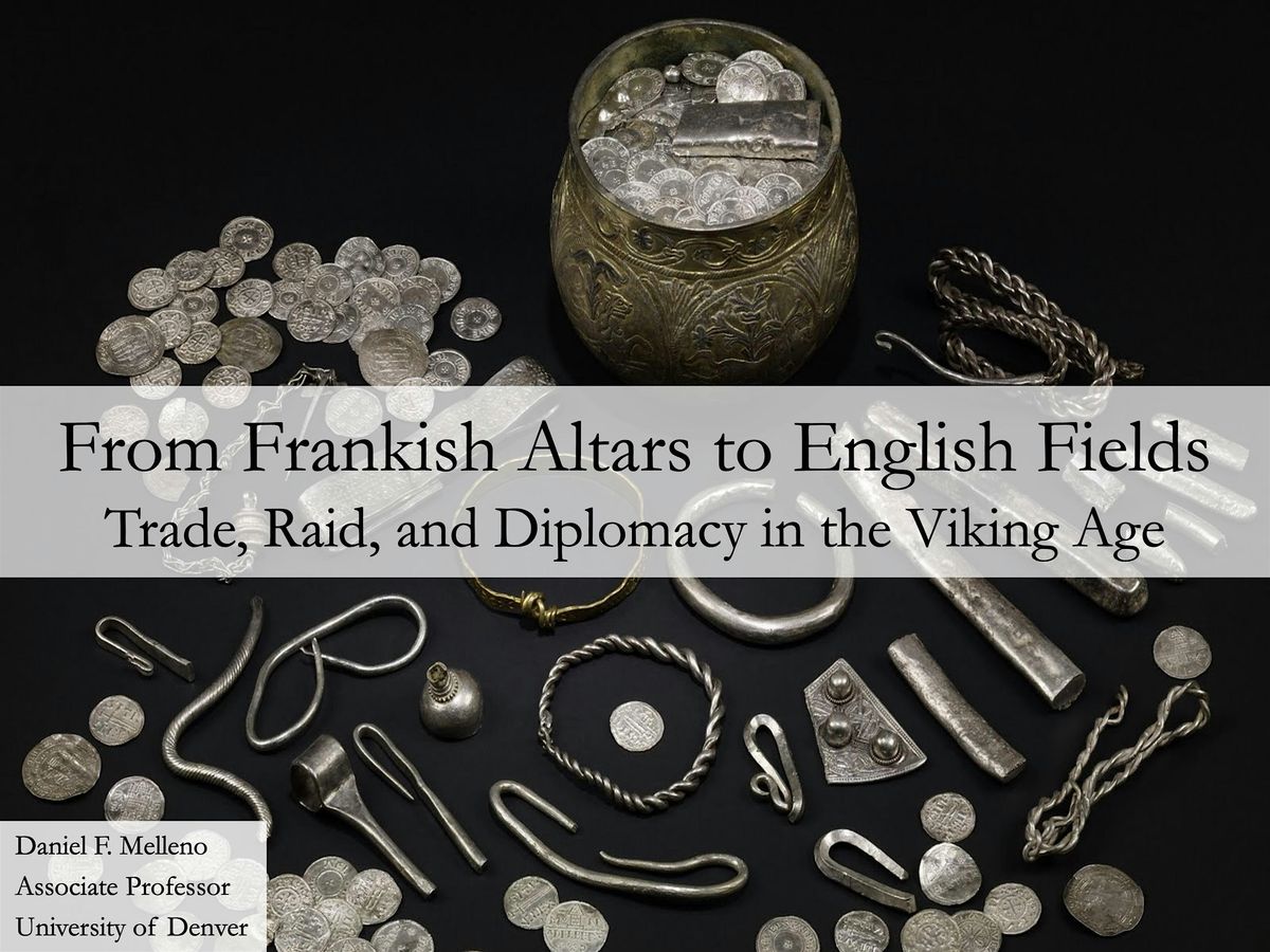 In 2007 amateur treasure hunters in Northern England uncovered an astonishingly trove. The 10th century Vale of York Hoard contains hundreds of coins and other precious items from across the medieval world, held in a silver gilded vessel originally used as a communion cup by the Carolingian Franks. So, how did a ninth century French vessel end up filled with silver and buried in a field in England a century later? The answer seems simple: Vikings! We’re all familiar with the popular image of the Vikings, raiders arriving without warning in their longboats to burn, K*ll, steal. But the origins of our treasure hoard may not be so straightforward! In this talk, Dr. Daniel Melleno will use the hoard as a starting place to discuss the variety of ways that the Northmen and their neighbors engaged and examine what a single silver cup can tell us about war, trade, and diplomacy in the Viking Age.