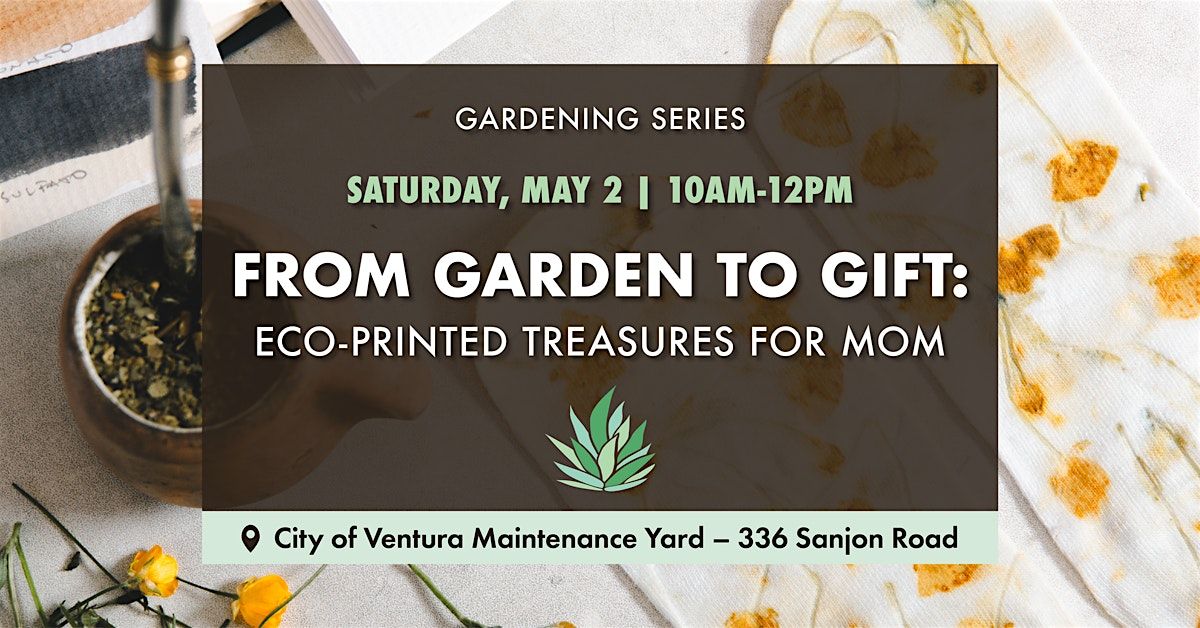Este divertido y creativo taller presencial, dirigido por el Gremio de Tejedores y Hilanderos del Condado de Ventura (), enseñará a los participantes a crear hermosos regalos con estampados ecológicos directamente de la naturaleza. Es perfecto para crear tesoros únicos y sinceros que a mamá (¡y quizás también a ti!) le encantarán. Póngase manos a la obra y deje fluir su creatividad mientras convertimos los hallazgos del jardín en recuerdos imborrables. ¡No se pierda esta maravillosa oportunidad de crear algo especial!