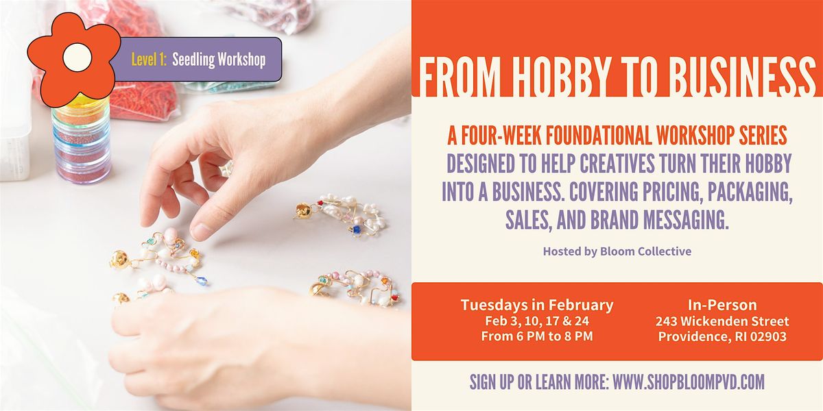 From Hobby to Business is a four-week, hands-on workshop designed for creatives, makers, and service-based sellers who are ready to move beyond “just a hobby” and start treating their work like a business, without losing the joy that made them start in the first place.
