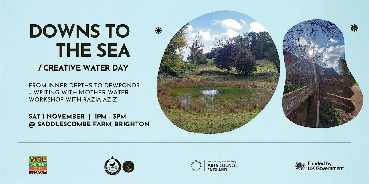 In this workshop, we will play with, be curious about, interrogate the great water being – the hydrosphere – of which we are a part, and which also lives in and through us. From dewponds to tidal waves, from aquifers to tears, from the sweat on your lip to the brew in your cup, from the slippery mud up on the Downs to the surf on the beach, let them all speak – and let your mind, and your pen, roam free. Come and immerse yourself in the flow of Saraswati and the rain blessed soils of Saddlescombe and see what she has to say to you.