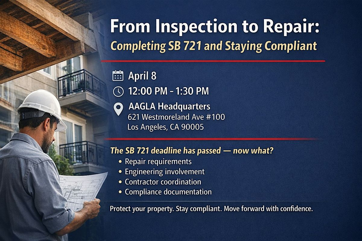 If your balcony inspection is complete or still pending, understanding the repair process is critical. This seminar will focus specifically on repair requirements, engineering reports, contractor coordination, and compliance documentation. Learn how to complete necessary repairs efficiently and protect your investment.