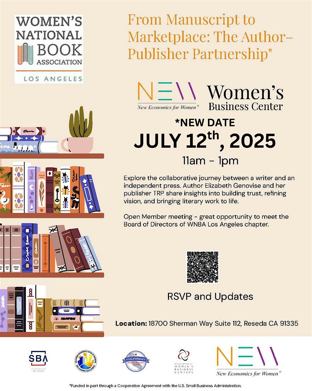 Author Elizabeth Genovise and her publisher TRP share insights into building trust, refining vision, and bringing literary work to life.Open Member meeting - great opportunity to meet the Board of Directors of WNBA Los Angeles chapter.