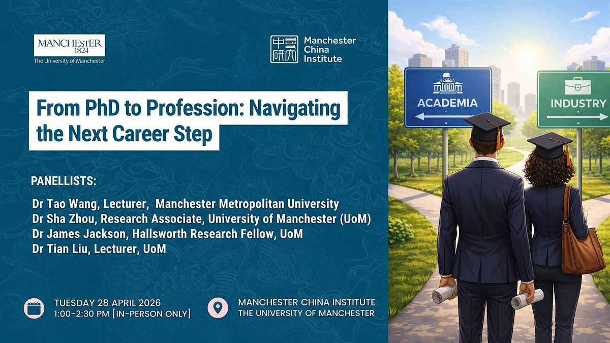 What comes next after completing a PhD? How do early career researchers navigate the transition from doctoral study to their first professional role? The Manchester China Institute invites postgraduate research students in China- related studies to a career panel discussion featuring academics and researchers from diverse disciplinary and professional backgrounds. Our speakers will share their personal journeys, reflections, and practical insights on securing suitable positions after graduation, both within and beyond academia.