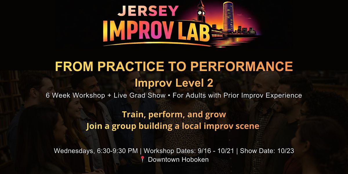Jersey Improv Lab’s six-week Level 2 workshop is designed for adults who have completed at least 12 hours of improv training and are ready to go deeper, both on and off stage.