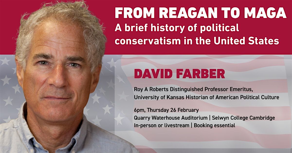 Selwyn visiting bye fellow David Farber will discuss the evolution of conservatism in America. From Reaganomics to populist economics, the Republican Party has remade itself repeatedly, even as It has embraced cultural hierarchy, social discipline, and unilateralism in foreign policy. And Farber asks a central question: is Trump the heir to a conservative political movement, or the creator of something new?