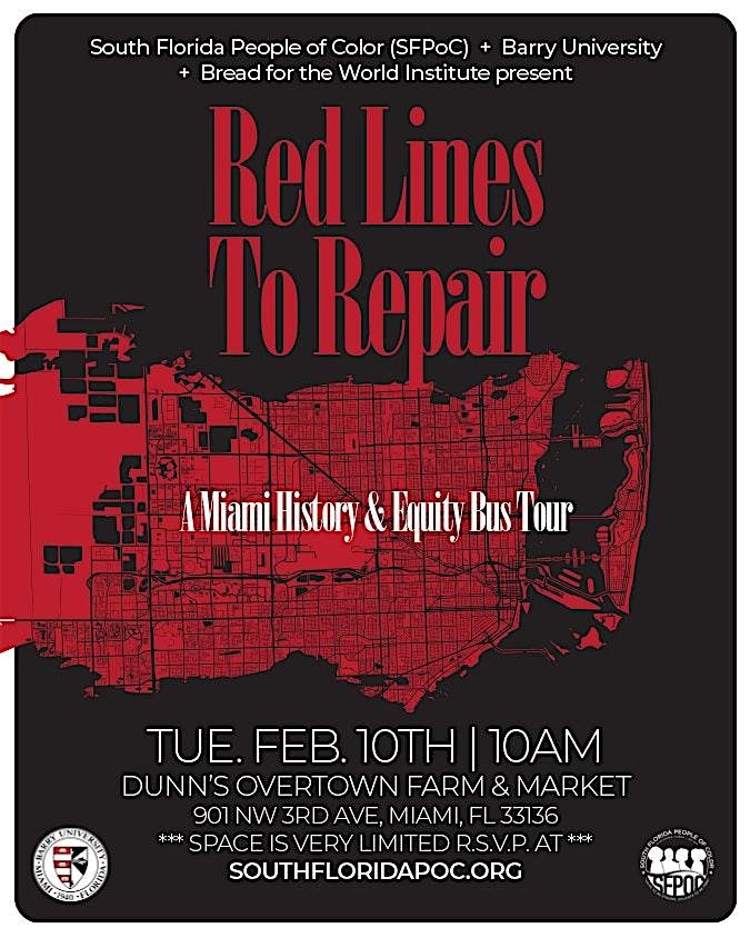 From Red Lines to Repair: A Miami History and Equity Tour is a one-day, immersive bus tour and facilitated learning experience that brings together local residents, college students, and an interfaith, multiracial book club to explore the history and present-day impact of redlining, segregation, and the racial wealth gap in Miami.