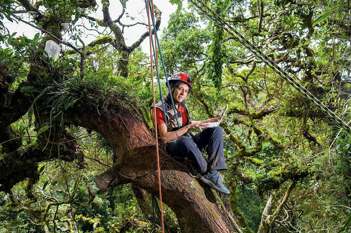 From National Geographic - Nalini Nadkarni is a National Geographic Society Explorer At Large, the highest distinction within the organization. She pioneered canopy access techniques to study the plants, animals, and microbes that live in the treetops. She interweaves her research on rainforest canopies with innovative public engagement. A contributor to 150 scientific papers and books, she has cast new insights on the importance of canopy plants in ecosystem processes and the effects of human activities on forest diversity and function.