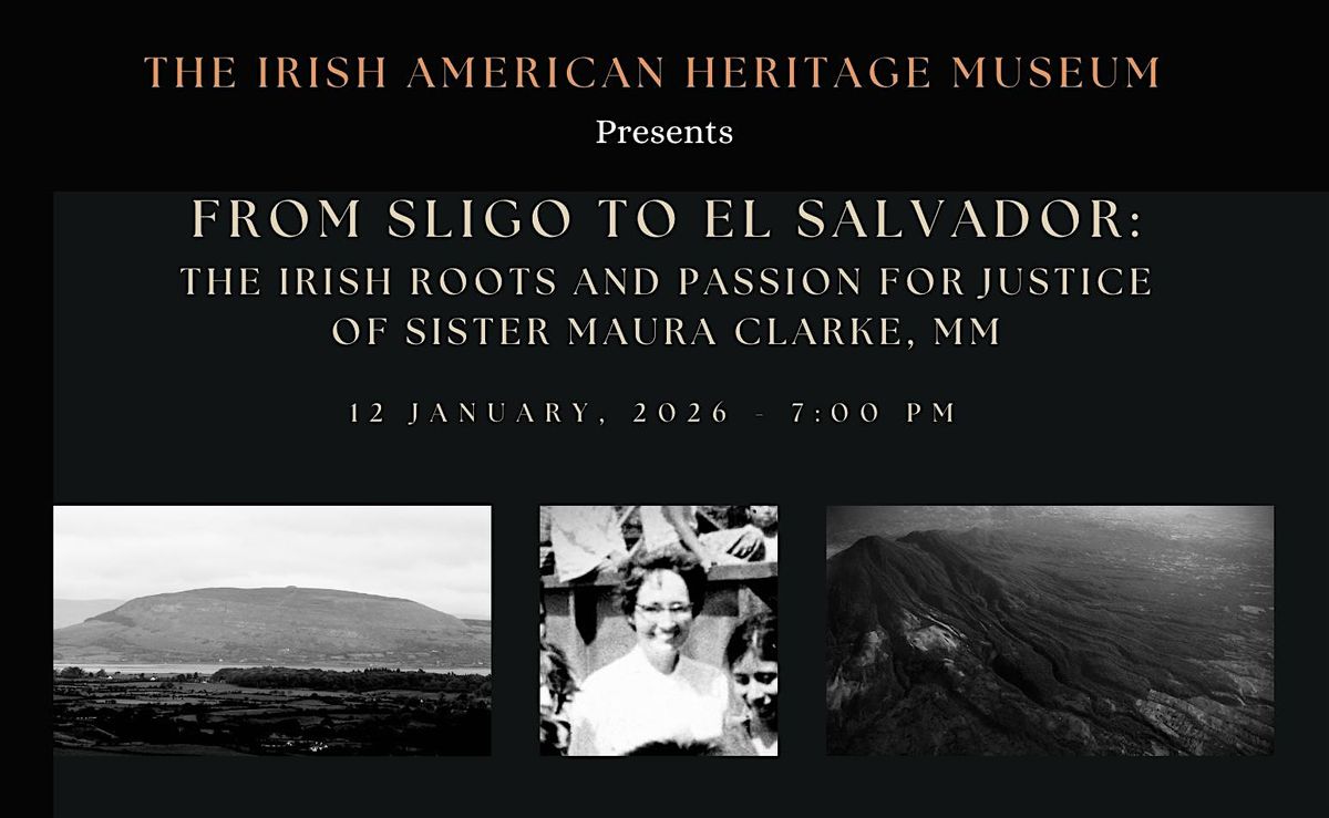 The Irish American Heritage Museum is honored to host the lecture and panel discussion, "FROM SLIGO TO EL SALVADOR:The Irish Roots and Passion For Justice of Sr. Maura Clarke, MM." This presentation will be an intimate view into Sr. Maura's life, work and legacy. Discussing Sister Maura’s remarkable journey is author Eileen Markey (A Radical Faith: The Assasination of Sr. Maura) and Sr. Maura's family members Deirdre Keogh-Anderson and IAHM's Executive Director Michael C. Clarke.