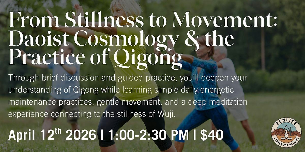 Through brief discussion and guided practice, you’ll deepen your understanding of Qigong while learning simple daily energetic maintenance practices, gentle movement, and a deep meditation experience connecting to the stillness of Wuji.