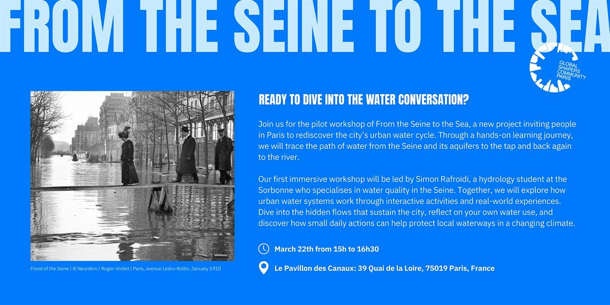 Join us for the pilot workshop of From the Seine to the Sea, a new project inviting people in Paris to rediscover the city’s urban water cycle. Through a hands-on learning journey, we will trace the path of water from the Seine and its aquifers to the tap and back again to the river.