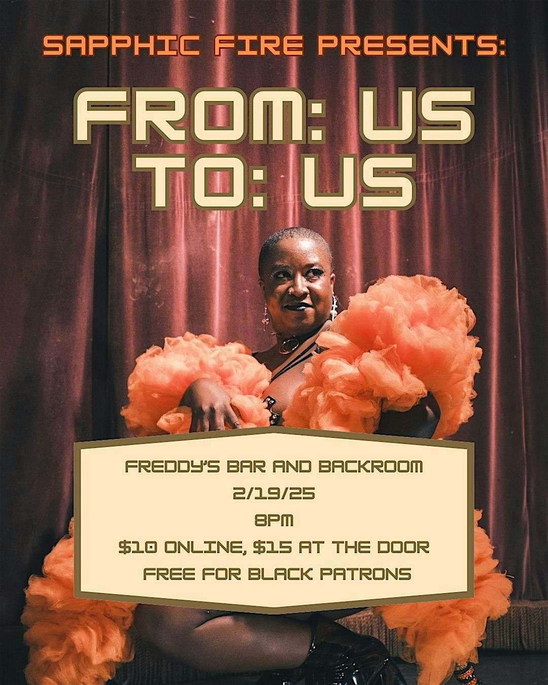 Conceived, hosted, and produced by Sapphic Fire, a burlesque show highlighting the art of incredible black burlesque performers.