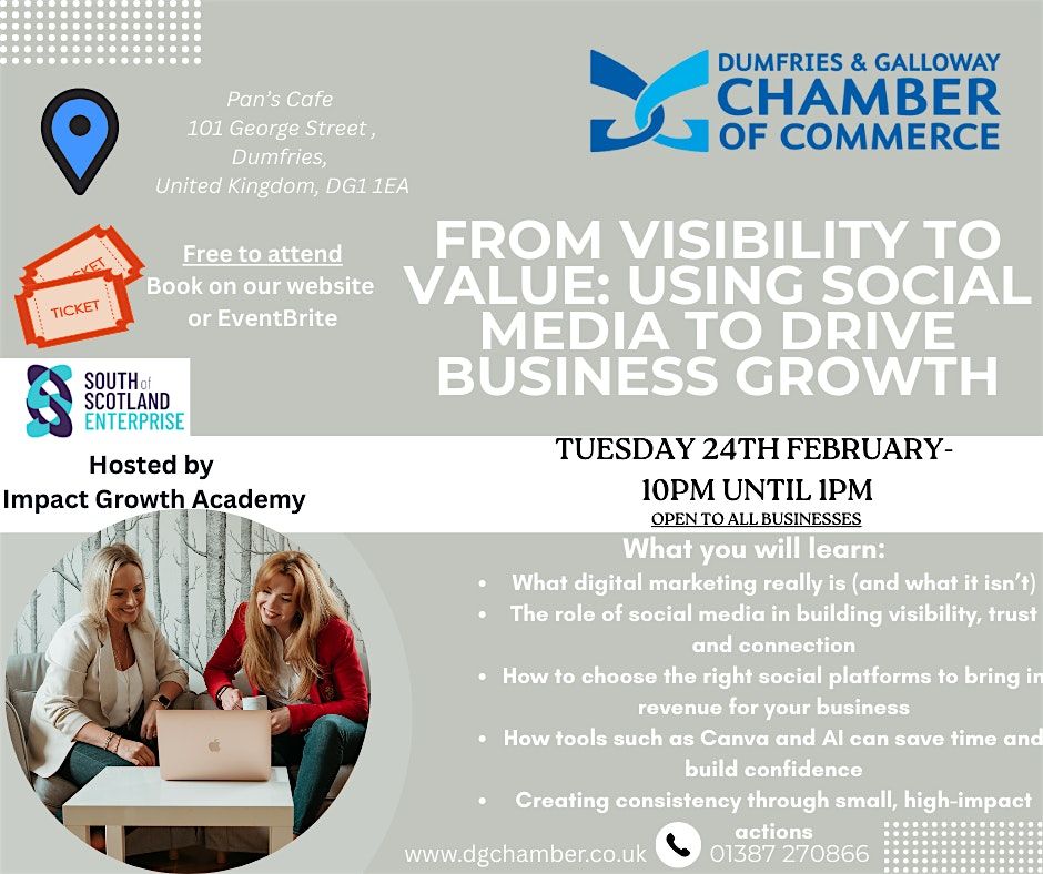 This interactive workshop is designed to help Chamber members cut through the noise around digital marketing and social media and gain practical clarity on how to show up online with confidence. Although framed around social media and digital visibility, the session is firmly business-first, with a clear focus on how online activity supports enquiries, sales and revenue — because visibility without commercial impact is of limited value to most businesses.