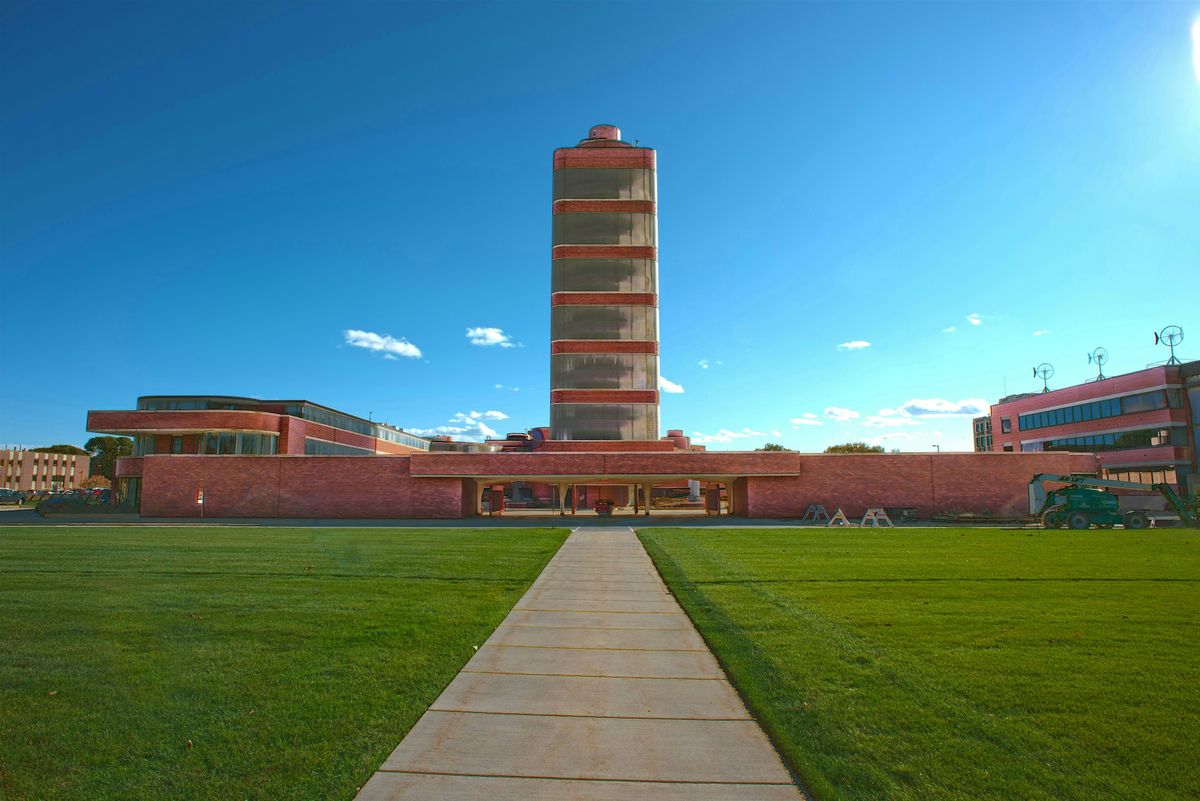 Info: Arrival at the SC Johnson Wax headquarters campus in Racine, WI.