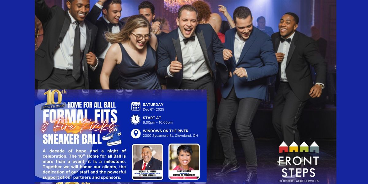 Join us for the 10th Anniversary Home for All Sneaker Ball, an unforgettable evening of style, purpose, and community! Step out in your best formalwear and favorite sneakers as we celebrate nearly 40 years of service by Front Steps Housing and Services—helping Clevelanders overcome homelessness and behavioral health challenges.