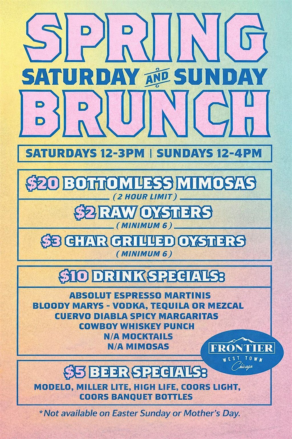 Join us every weekend for brunch at Frontier in West Town.