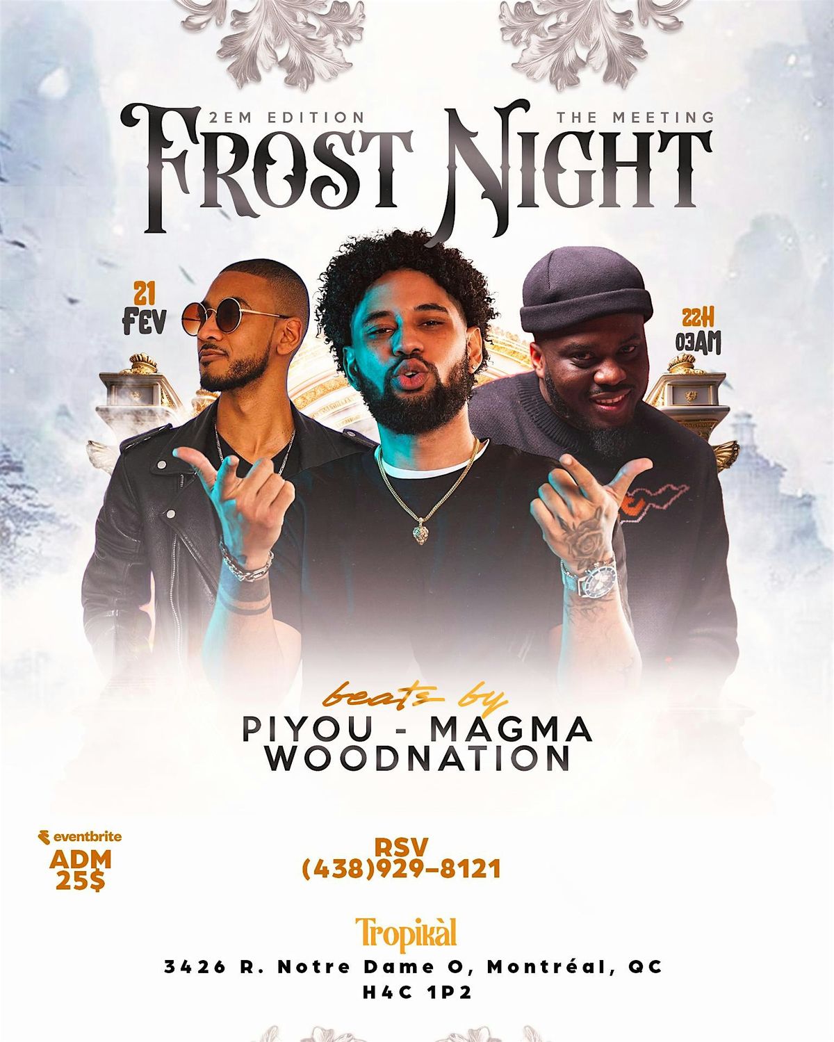 Welcome to FROST NIGHT! Get ready for a magical evening filled with ice sculptures, winter treats, and live music. Join us on February 21, 2026 at 12:00 AM for a night to remember. Don't miss out on the fun at [venue_name]. Bundle up and bring your friends and family for a chilly adventure! (Eastern Time)