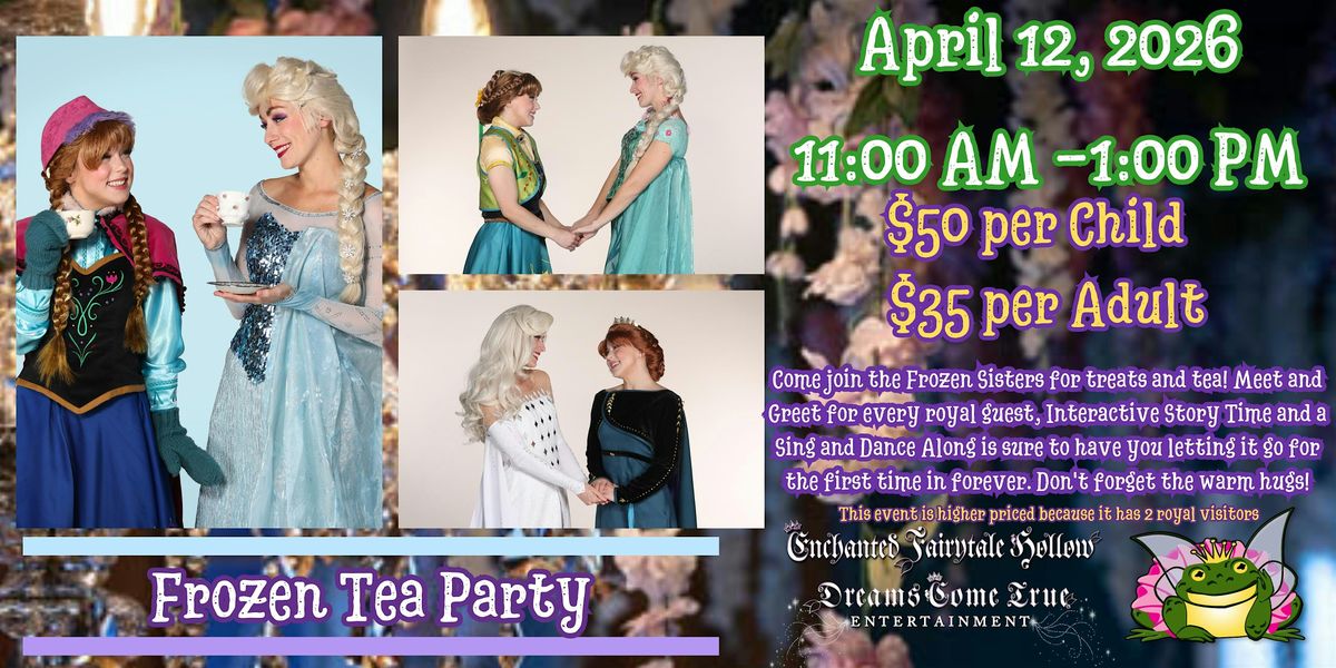 Come join the Frozen Sisters for treats and tea! Meet and Greet for every royal guest, Interactive Story Time and a Sing and Dance Along is sure to have you letting it go for the first time in forever! And don't forget the warm hugs!