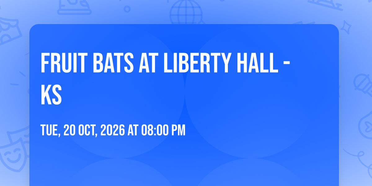 ✨ Experience the magic of Fruit Bats at Liberty Hall - KS, where moments become memories that last a lifetime! 🏛️ The iconic Liberty Hall - KS in Lawrence, KS sets the perfect stage for an unforgettable celebration on October 20th, 2026 at 08:00 PM. 🌟 It's been a curated experience that brings together the best of entertainment and innovation, creating an atmosphere of wonder and excitement. From the moment you arrive, you'll be immersed in a world where the ordinary transforms into the extraordinary. 🎊 Book early to secure your place in what promises to be an event that will be talked about for years to come!