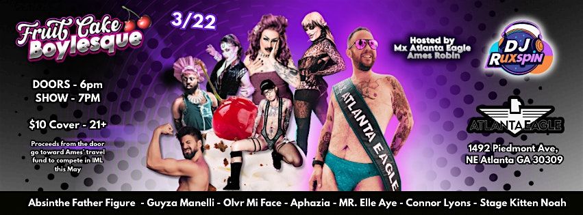 Ames is represnting the Atlanta Leather, Queer, Kink, and Trans communities as well as the Atlanta Eagle in his run for International Mr. Leather in May. Come support his dream and see some AMAZING performers! Doors open at 6, show starts at 7!